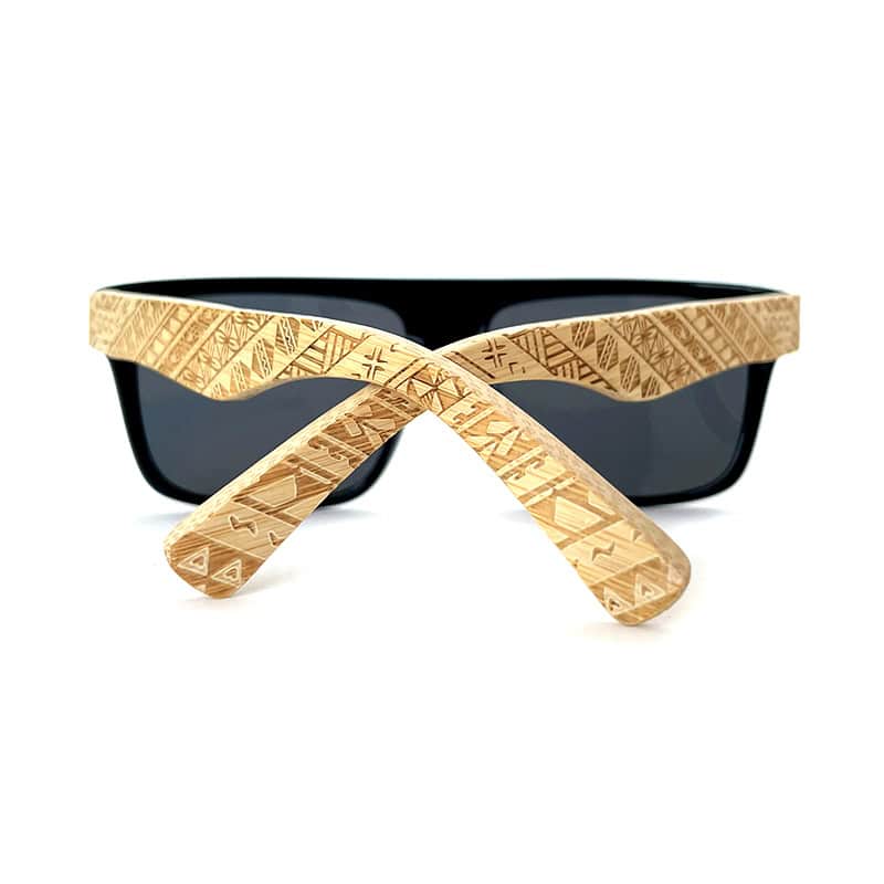 Crafted with sustainably sourced bamboo sides, these sunglasses feature laser-engraved traditional Pacific motifs for a touch of cultural elegance.